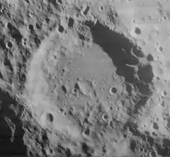 Helmholtz is a lunar impact crater, approximately 110 kilometers in diameter, that is located near the south-southeast limb of the Moon. Attached to the south-southeast rim of Helmholtz is the somewhat smaller crater Neumayer. The larger crater Boussingault is nearly attached to the west-southwestern rim. The crater is named after German physicist and physician Hermann von Helmholtz[1]