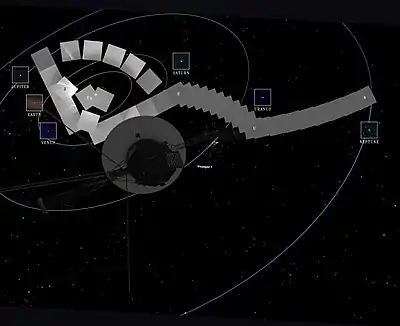 Presence in the outer Solar System was achieved by Pioneer 10 in 1972[30] and continuous presence in interstellar space by Voyager 1 in 2012.[31]