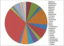 By 2019, 122 students were enrolled in the IRAP PhD program:[48] 1 from Albania, 4 from Argentina, 8 from Armenia, 1 from Austria, 2 from Belarus, 16 from Brazil, 5 from China, 9 from Colombia, 3 from Croatia, 5 from France, 5 from Germany 7 from India, 2 from Iran, 38 from Italy 2 from Kazakhstan, 1 from Lebanon, 1 from Mexico, 1 from Pakistan, 4 from Russia, 1 from Serbia, 1 from Sweden, 1 from Switzerland, 1 from Saudi Arabia, 2 from Taiwan and 1 from Turkey.