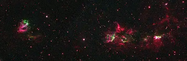 IRAS 18162-2048 is a far-infrared source discovered by IRAS spacecraft in 1983. It is associated with a massive (~10 solar masses) protostar, which accretes gas from a disk that surrounds it. IRAS 18162-2048 emits two collimated radio jets along its axis of rotation. The jets are made of chains of radio sources aligned in a southwest-northeast direction. The northern jet terminates in Herbig–Haro object HH 81N, while the southern one terminates in Herbig–Haro objects HH 80 and HH 81. The total luminosity of IRAS 18162-2048 is about 17,000 solar luminosities. The total extent of this system of jets and radio sources is about 5 pc.[2]