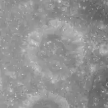 Krogh is a small lunar impact crater that is located in the eastern part of the Moon, to the southeast of the crater Auzout. It was named after Danish zoologist, physiologist and Nobel laureate August Krogh.[1] This crater was previously designated Auzout B. The crater is roughly circular and bowl-shaped, with an inner wall that is wider in the north than the south. It is otherwise an undistinguished formation.