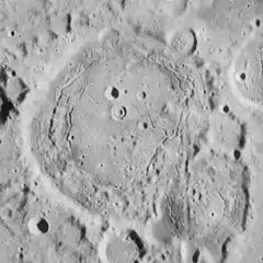 ![]() Lavoisier at center, Lavoisier F in lower right. Lunar Orbiter 4 image. | |