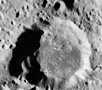 Levi-Civita is a lunar impact crater formation that lies on the far side of the Moon. It was named after Italian mathematician Tullio Levi-Civita.[1] It is located just to the southwest of the large walled plain Gagarin, and nearly as close to the crater Pavlov to the south-southwest. To the northwest of Levi-Civita lies the smaller crater Pirquet.