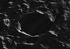 Lowell is a lunar impact crater that lies just beyond the western limb of the Moon. It is embedded within the northwestern part of the Montes Rook mountain ring of the Mare Orientale impact basin. This portion of the Moon's far side is sometimes brought into view of the Earth during periods of favorable libration and lighting, although it is only seen from the edge.