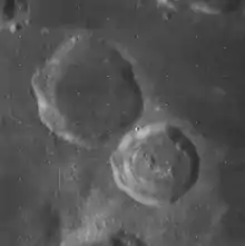 ![]() Lunar Orbiter 4 image of Magelhaens (upper left) and Magelhaens A (lower right) | |