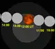 ![]() The moon passes west to east (right to left) across the Earth's umbral shadow, shown in hourly intervals. | |