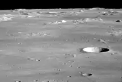 ![]() Lunar Orbiter 4 image of Milichius crater (right) and Milichius Pi lunar dome(left) (horizontal rows of spots are blemishes on original) | |