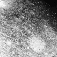 A palimpsest /ˈpælɪmpsɛst/, in planetary astronomy, is an ancient crater that has been degraded over time. They may also be referred to as "ghost craters", "degraded craters", "buried craters", or "pathological craters". Palimpsests have been identified on Mercury, the Earth, the Moon, Mars, Ganymede, Callisto, and possibly even Titan. On Mars, these features are morphologically described as craters that are "flat-floored, rimless, extremely shallow, without central peaks, and would probably represent what remains after erosion."[1]