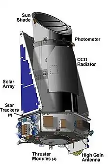 Historically, photometry in the near-infrared through short-wavelength ultra-violet was done with a photoelectric photometer, an instrument that measured the light intensity of a single object by directing its light onto a photosensitive cell like a photomultiplier tube.[4] These have largely been replaced with CCD cameras that can simultaneously image multiple objects, although photoelectric photometers are still used in special situations,[14] such as where fine time resolution is required.[15]