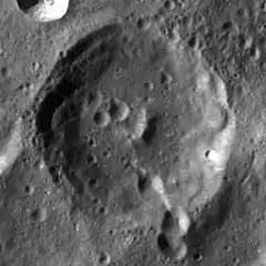 Pizzetti is a partly eroded lunar impact crater that lies in the southern hemisphere on the far side of the Moon. It is located due north of the similar-dimensioned Clark, and to the southeast of the large walled plain Milne. Nearly attached to the western rim is the small Tyndall. The crater is named for the Italian astronomer and geodesist Paolo Pizzetti (1860-1918).