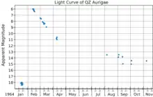QZ Aurigae is classified as a "fast nova", because it dropped from peak brightness by three magnitudes in less than 100 days.[7]