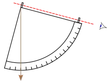 Along one edge there were two sights forming an alidade. A plumb bob was suspended by a line from the centre of the arc at the top.