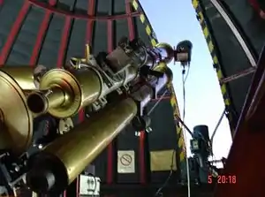 - Astro-photographic double equatorial refractor of 380 mm diameter at the Fabra Observatory in Barcelona.[13] This telescope was used by Josep Comas i Solà to observe the moons of Mars, Deimos and Phobos, in 1909, and to photograph Halley’s comet in 1910.[14][15]