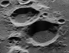 ![]() Oblique Lunar Orbiter 5 image of Scobee (lower right) and Smith (upper left) | |