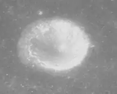Smithson is a small lunar impact crater located in the northeast part of Mare Fecunditatis. It is a circular, cup-shaped feature with a slightly higher albedo than the surrounding, dark lunar mare. It was previously identified as Taruntius N before being renamed by the IAU. Taruntius itself lies to the west-northwest, in the northwestern part of the same mare.