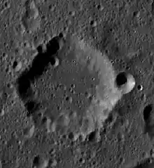 Spallanzani is a lunar impact crater located in the rugged, crater-marked terrain of the Moon's southern hemisphere. It was named after Italian natural scientist and biologist Lazzaro Spallanzani.[1] To the southeast is the prominent crater Pitiscus, and to the north is Nicolai.