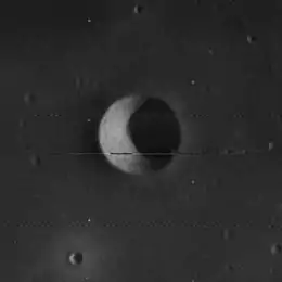 ![]() Apollo 12 image, showing the crater's hummocky ejecta surrounding the rim | |