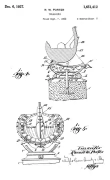 He presented the application of patent on 25 January 1922 and was conceded the same on 25 September 1923 under number US1468973.[7] However, the final model differed of the aforementioned patent in the zone of the base, since there were later modifications of design that were collected in a new patent for a refracting telescope version. Although it presented the application some months after the first, 7 September 1922, it was conceded years later, on 6 December 1927 under number US1651412 but it was never manufactured.[4]