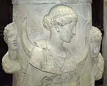 The Ancient Egyptians possibly knew that the morning star (Tioumoutiri) and evening star (Ouaiti)[53] were one and the same by the second millenium BC or at the latest by the Later Period unter mesopotamian influence.[54][55] At first described as either a phoenix or heron (or Bennu),[54] calling it "the crosser" or "star with crosses",[54] and associated with Osiris, later during the Late Period under probably mesopotamian influence Venus was depicted as a two-headed morning god (with human and falcon heads), as in the Dendera zodiac, and associated with Horus,[55] son of Isis (which during the even later Hellenistic period was together with Hathor identified with Aphrodite).