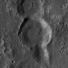 Vogel is a small lunar impact crater located to the southeast of Albategnius. It was named after the German astronomer Hermann Carl Vogel.[1] It is the smallest member of a trio of craters that increase in size from north to south, consisting of Vogel, Argelander and Airy. To the west is the remnant of the crater Parrot.