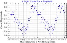 - Li Causi, G.; et al. (January 2013). "On the binarity of the classical Cepheid X Sagittarii from interferometric observations". Astronomy & Astrophysics. 549: 5. arXiv:1211.4698. Bibcode:2013A&A...549A..64L. doi:10.1051/0004-6361/201220207. S2CID 54805744. A64.