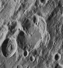 Zeno is a lunar impact crater located near the northwestern limb of the Moon. It lies to the east-southeast of the crater Mercurius. Farther to the east of Zeno, along the limb, is the well-formed crater Boss.