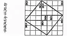 ![]() The Gougu Theorem diagram added to the Zhoubi by Zhao Shuang | |||||||||