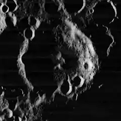 Zsigmondy is a lunar impact crater located beyond the northwestern limb on the far side of the Moon. Attached to the southeastern rim of the crater is the crater Omar Khayyam, which lies within the much larger Poczobutt. Farther to the east, along the north rim of Poczobutt, is Smoluchowski.