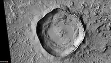 Zunil is an impact crater near the Cerberus Fossae on Mars, with a diameter of 10.26 kilometres (6.38 miles). It is named after the town of Zunil in Guatemala.[1] The crater is located in the Elysium quadrangle. Visible in images from the Viking 1 and Viking 2 Mars orbiters in the 1970s, Zunil was subsequently imaged at higher resolution for the first time by the Mars Global Surveyor (MGS) Mars Orbiter Camera (MOC) in 2000.[2]