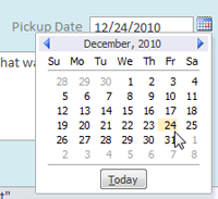 Since the Pickup Date field on the related form only accepts information formatted as a date, the Pickup Date text box includes a calendar button to ensure that users can only enter a date in the desired format. Requiring dates to be entered in a consistent format ensures that the database will recognize each entry in this field as a date.
