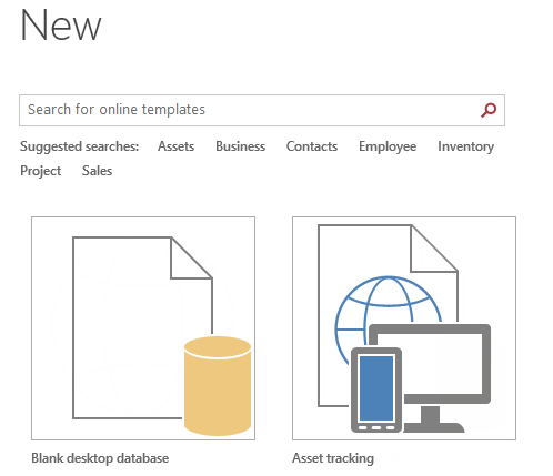 Click here to create a new database from scratch, or choose from a selection of templates.