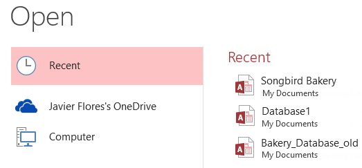 From here, you can open databases from your computer, including those you've recently edited.