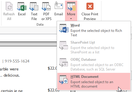 You can save reports in other formats so they'll be viewable outside of Access. This is called exporting a file, and it allows you to view and even modify reports in other formats and programs.