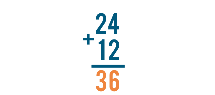 To solve a stacked addition problem, start by adding the digits farthest to the right.