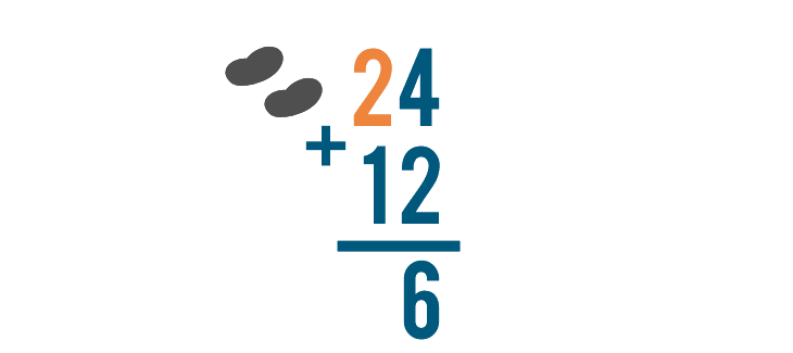 2 + 4 is 6. Let's write the 6 beneath the line, under the 2 and 4.
