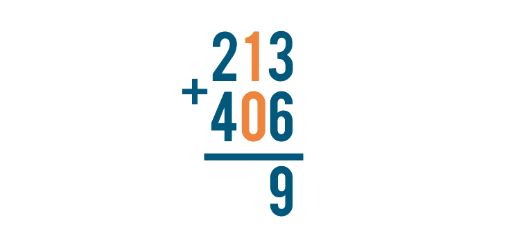 As always, we start with the digits on the far right. Here, that means we'll solve 3 + 6.