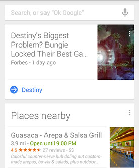 For example, if you tap the microphone, you can do a quick voice search or voice command. If you tap the bar itself, you can browse content that Google thinks might be relevant to you (like nearby traffic delays).