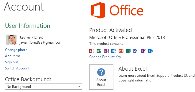 From the Account pane, you can access your Microsoft account information, modify your theme and background, and sign out of your account.