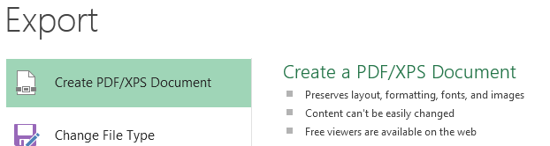 You can choose to export your workbook in another format, such as PDF/XPS or Excel 1997-2003.