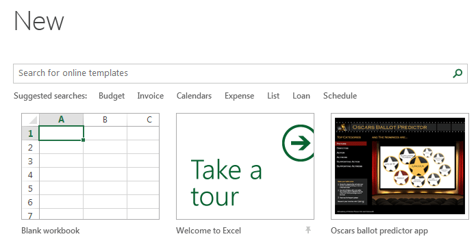 From here, you can create a new, blank workbook, or choose from a large selection of templates.