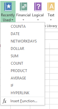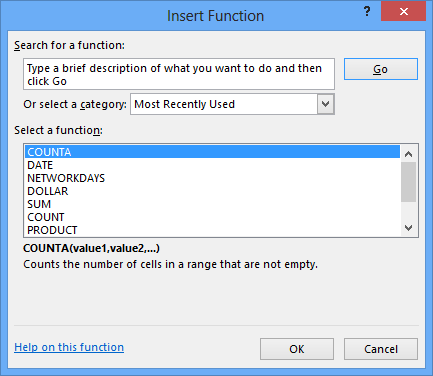 If you're having trouble finding the right function, the Insert Function command allows you to search for functions using keywords.