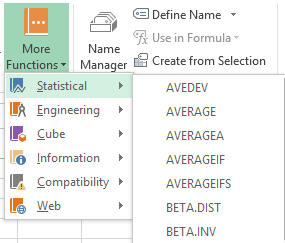 More Functions contains additional functions under categories for Statistical, Engineering, Cube, Information, and Compatibility.