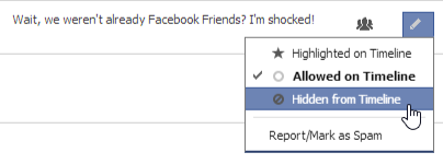 Sometimes, you may want to hide a post from your Timeline. Simply click the Edit button next to any post in your Activity Log and then select the desired option from the drop-down menu.