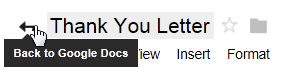 Hover the mouse next to the document title. An arrow will appear. Click the arrow to navigate back to your Google Drive home page.