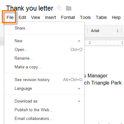Various menus for working with your document can be found in the Menu toolbar. Click a menu to see available commands and options.