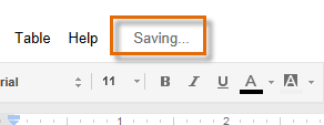 Google Drive automatically saves your changes as you work. The saved changes notification lets you know that you document has been saved.