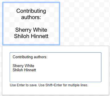 Double-click on the text box or shape to add to or edit the text inside it.