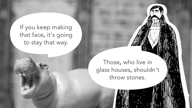 Those who live in glass houses shouldn't throw stones.