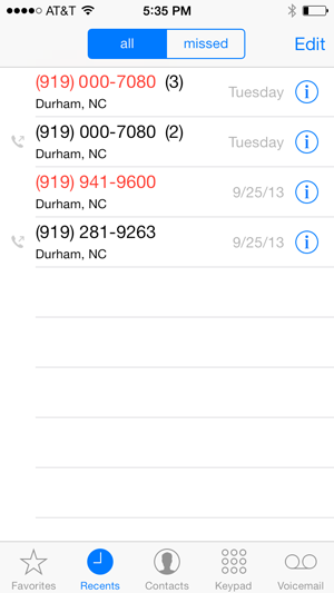 Tap Recents to view recent received and sent calls. You can tap all to view all calls or missed to see only missed called.