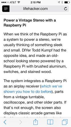The Reader feature allows you to view web articles in a large, easy-to-read format, free of any ads or clutter.